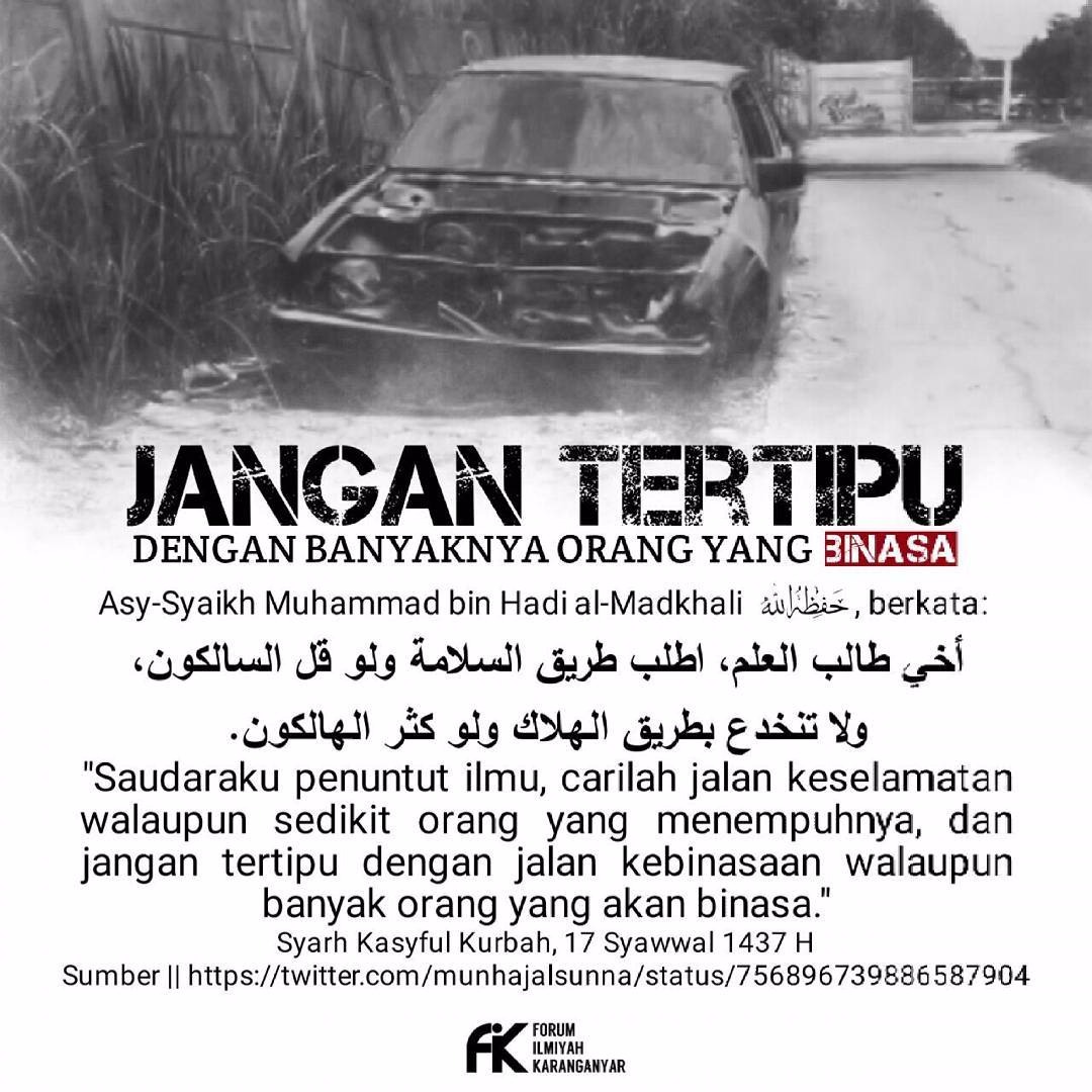 Oleh karena itu KAMI MEMANDANG UNTUK TIDAK BOLEH DUDUK DENGAN AHLUL BID’AH SECARA MUTLAK. Bahkan walaupun dia tidak mendapati ilmu bahasa arab, ilmu balaghah, dan ilmu sharaf – misalnya – kecuali pada mereka. Allah akan menjadikan untuknya yang lebih bagi dari itu. Karena berdatangannya para penuntut ilmu kepada mereka (ahlul bid’ah) tidak diragukan akan menyebabkan mereka tertipu (dengan diri sendiri) dan menyebabkan umat tertipu dengan mereka.