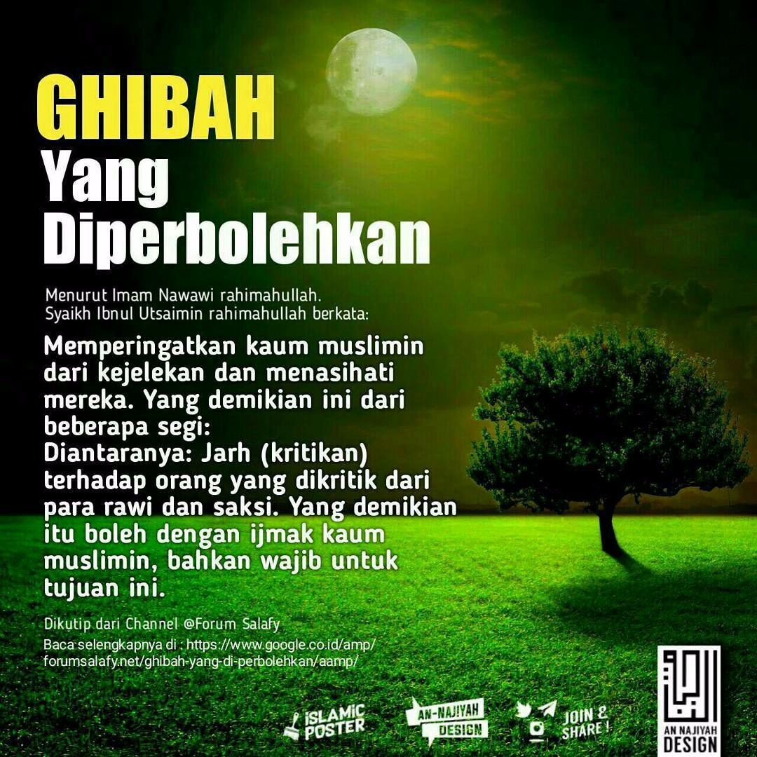 Saudariku, rahimakumullah. Perlu diketahui bahwa larangan melakukan ghibah dan ancaman serta balasan berupa azab yang pedih atas ghibah berlaku pada kategori ghibah yang telah diharamkan oleh Allah subhanahu wa ta’ala. Para ulama menyebutkan enam hal yang tidak termasuk dalam larangan ini meskipun berkaitan dengan penyebutan kejelekan orang lain. Keenam hal itu ialah: