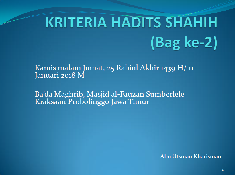SYARAT HADITS SHAHIH: PERAWI ADIL DAN KOKOH (DHOBITH)