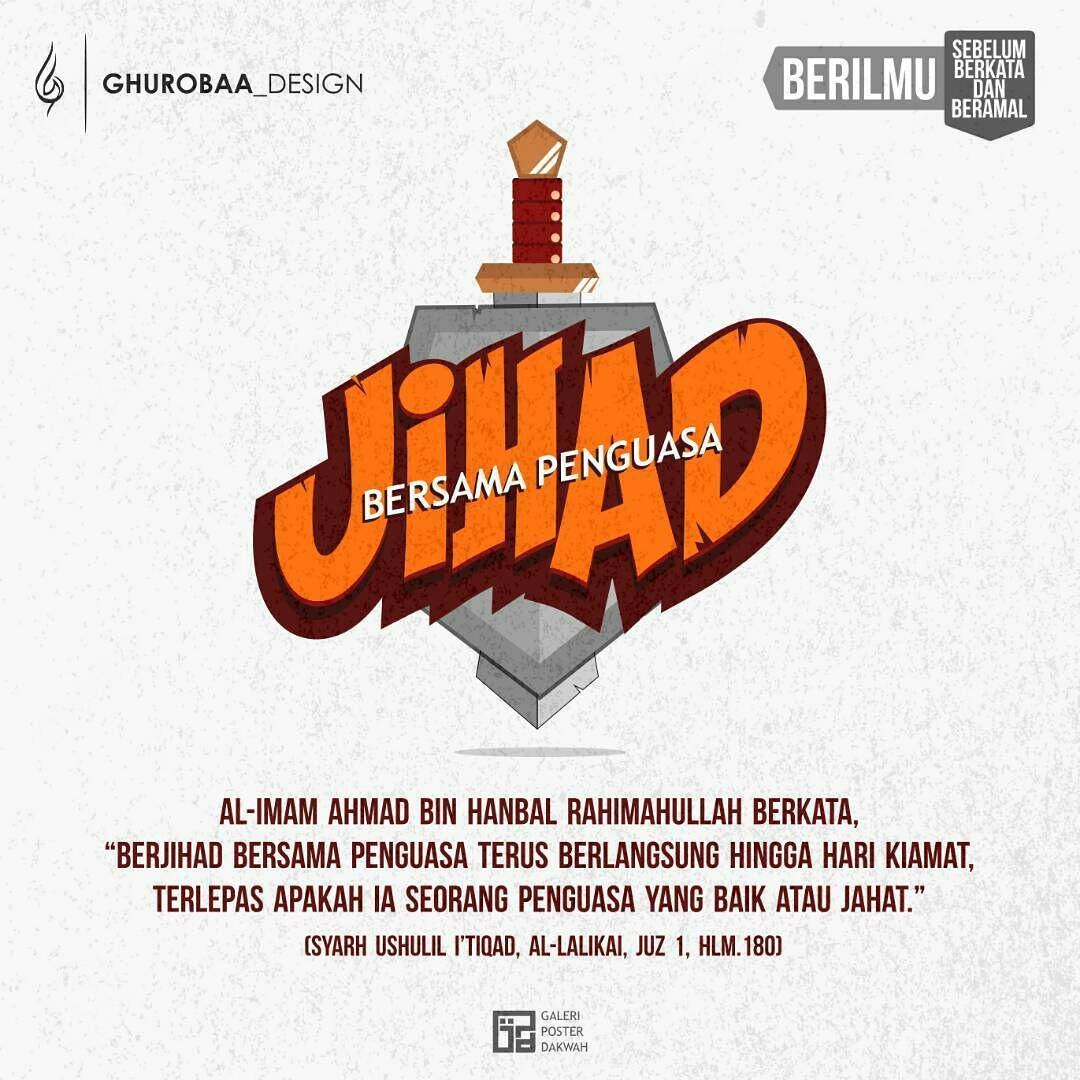Berkata Abdullah bin Imam Ahmad (w. 290 H) rahimahumallah, saya mendengar ayahku berkata, “Apabila imam (penguasa) mengizinkan dan rakyat mendapat seruan berjihad maka tidak apa-apa mereka keluar (untuk berjihad).” Saya berkata kepada ayahku, “Kalau mereka keluar tanpa seizin imam?” Beliau menjawab, “Tidak (boleh), kecuali imam mengizinkan, kecuali ada serangan tiba-tiba dari musuh terhadap mereka dan tidak memungkinkan mereka untuk meminta izin dari imam, maka saya berharap perbuatan tersebut termasuk membela kaum muslimin (jihad daf’iy,-pen.).” [8]